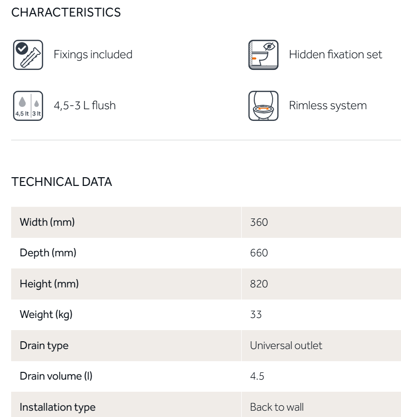 DOL100 MIRTO UNIVERSAL BACK TO WALL TOILET